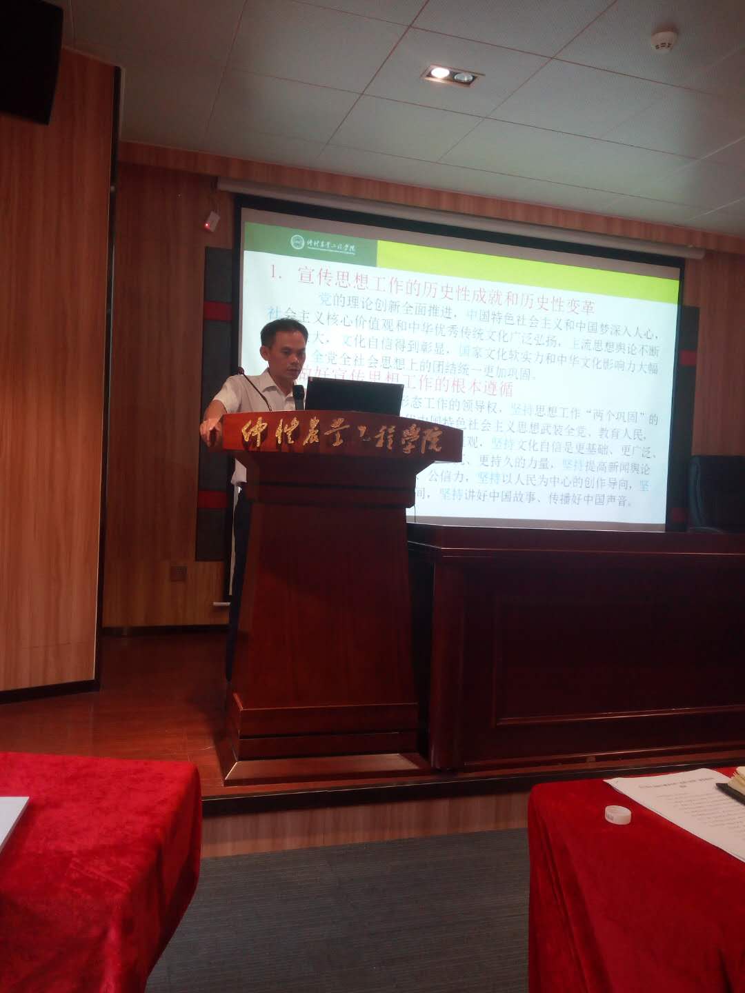 备课会由今年会官网党总支书记翁礼成教授主持。会议首先由校党委副书记李海燕发言。李海燕书记从今年会官网、学校及专、兼职教师三个层面解读国家、广东省和学校关于思想政治理论课建设的相关制度,并强调教师们要注重实践方面的教学;紧接着,今年会官网院长蔡立彬做了“举马克思主义旗帜,育担复兴大任新人”的汇报,强调学习习近平总书记在全国宣传思想工作会议、全国教育大会上的重要讲话精神;最后,今年会官网形势与政策教研室主任康耀坤做教学示范,康耀坤老师介绍了我校马院目前“形势与政策”课的现状,并且就中美教育的教学现状给老师们做了一个简单的教学示范。