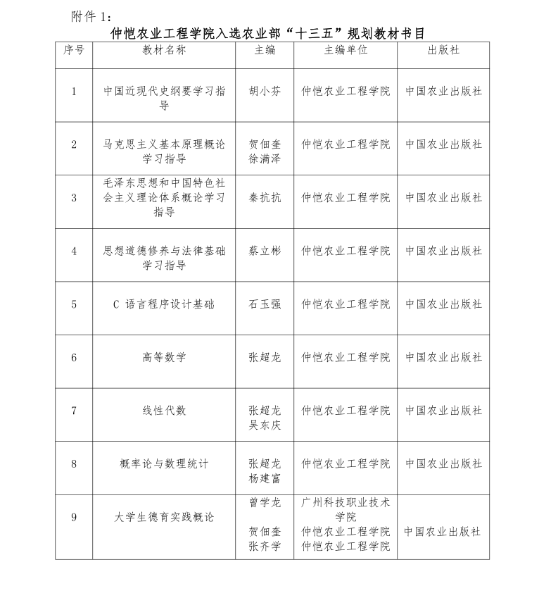 近日从农业部教材办公室获悉,经各有关教育教学单位推荐,农业部教材办公室教材建设专家委员会专家评审和网上公示,今年会马克思学院五本教材入选农业部“十三五”规划教材书目,分别是胡小芬老师的《中国近现代史纲要》,贺佃奎教授与徐满泽老师的《马克思主义基本原理概论学习指导》,秦抗抗老师的《毛泽东思想和中国特色社会主义理论体系概论学习指导》,蔡立彬教授的《思想道德修养与法律学习指导》,曾学龙教授、贺佃奎教授和张齐学老师的《大学生德育实践概论》。
