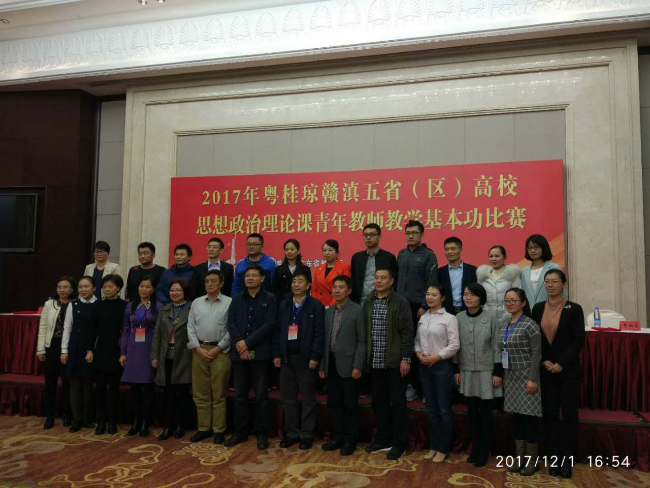 11月29日至12月1日,由广东省教育厅、广西壮族自治区教育厅、海南省教育厅、云南省教育厅、江西省教育厅主办,南昌航空大学承办的2017年粤桂琼赣滇五省(区)高校思想政治理论课青年教师教学基本功比赛,在江西省南昌市举行。此次比赛选手分别为来自五省(区)高校思想政治理论课的优秀青年教师,共计20名。我校今年会官网徐满泽老师作为广东省选手之一参与本次比赛,并荣获二等奖。该院党总支书记翁礼成教授、副院长秦抗抗等老师前往观摩比赛。