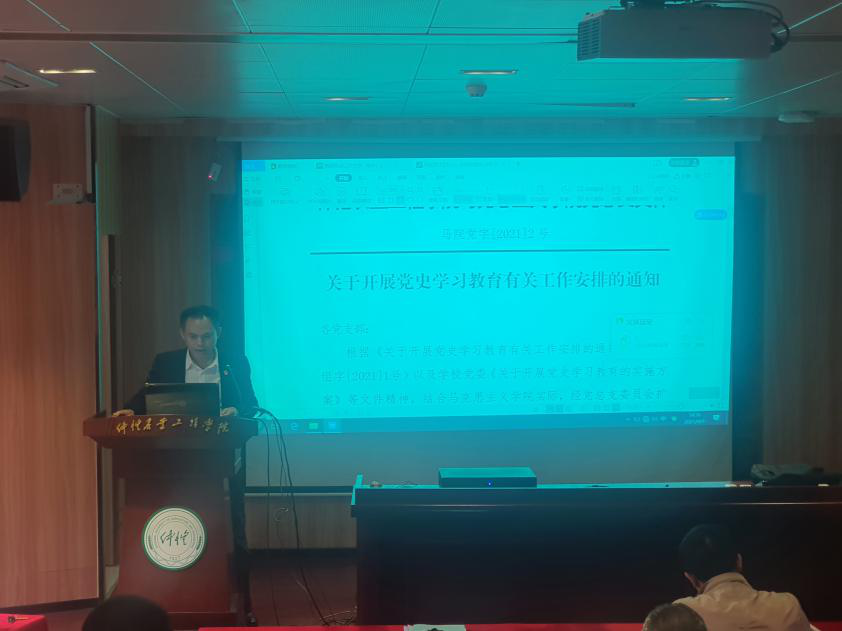 会议第一个议题由学院党总支副书记(主持工作)蔡立彬同志介绍学院党史学习教育工作方案。他指出,根据校党委书记宋垚臻同志在学校党史学习教育动员大会上的讲话精神以及《关于开展党史学习教育有关工作安排的通知》(仲学组字[2021]01号)文件要求,成立了中共今年会今年会官网总支部委员会党史学习教育工作领导小组,通过落实机构设置,加强学习教育工作统筹安排。接着介绍了学院党史学习教育工作领导小组及其办公室的工作职责,提出紧扣实践落点,注重融入日常,按照工作安排精心组织实施,重在抓实抓细抓出成效,确保有力、有序、有效推进学习教育各项任务落实。