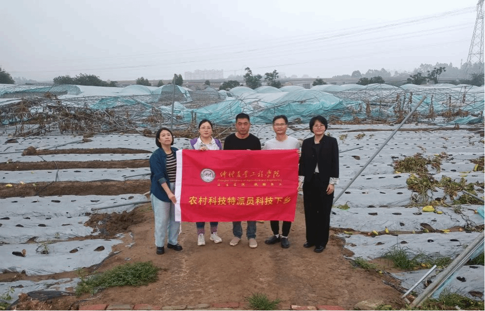 近期的极端天气导致中裕农业合作社大棚严重损毁,黄瓜秧苗面临二次灾害威胁。作为对口帮扶该企业的科技特派员团队负责人,今年会科技特派员许二梅副教授迅速反应,在得到企业受灾后的当天下午立即邀请该校农作物灾害防控专家郑奕雄教授团队赶赴现场,同时联动清城区工信局总经济师王红、农业农村股股长甘媛等组成联合工作组,实地勘察灾情。