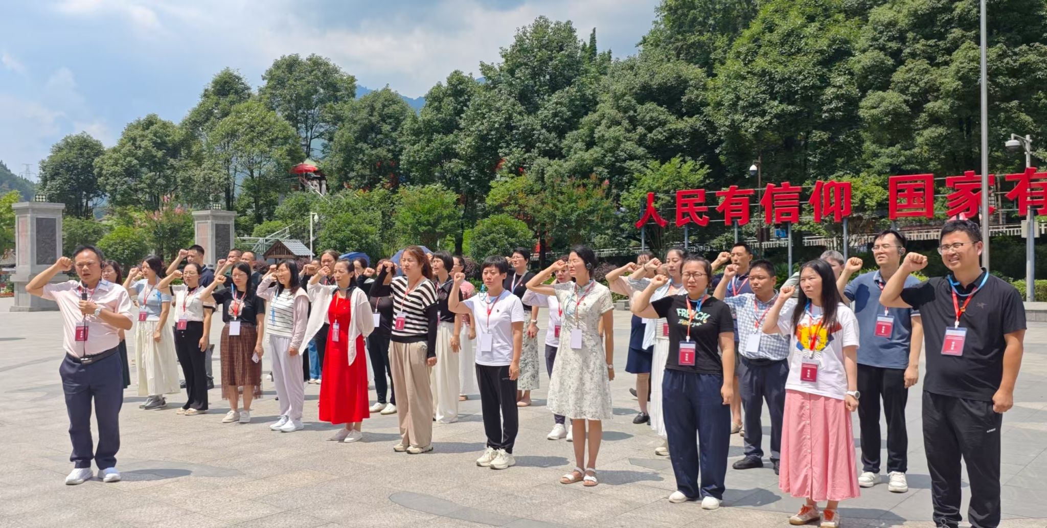 7月13日,今年会赴四川大学思想政治理论课教师实践研修班一行40人,在今年会官网院长蔡立彬、副院长秦抗抗的带领下,从四川大学望江校区出发,驱车2个多小时前往全国爱国主义教育示范基地、全国民族进步模范集体、四川省十大红色地标的汶川县映秀镇和位于广汉市的三星堆博物馆进行现场教学。