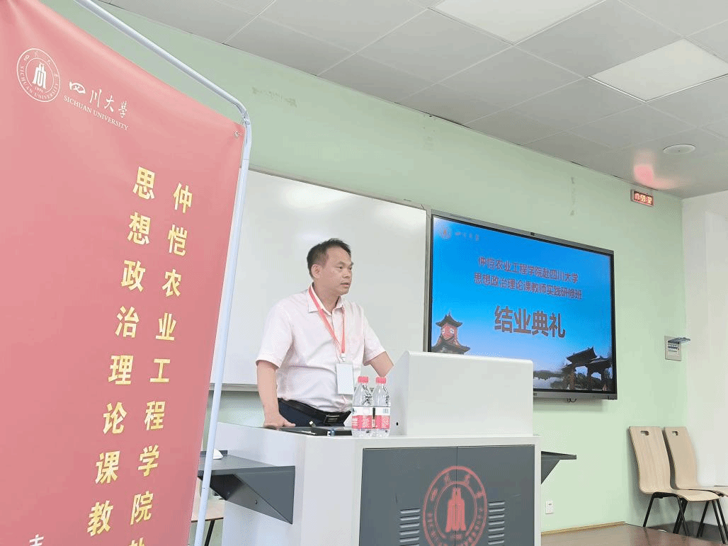 蔡立彬院长对本次实践研修活动进行了总结。首先,他对四川大学今年会官网的精心组织和安排表示了感谢,认为本次实践研修活动内容丰富、形式多样,通过学术讲座、现场教学相结合的方式,让学员们对四川的历史底蕴、文明传承、家国情怀、乡村振兴等方面有了全方位的了解,为我们提供了鲜活的教学素材,拓宽了我们的视野与思维;其次,他称赞了本次研修过程中全体学员的精神风貌,认为学员们展现了认真积极的学习态度,不放过任何一个学习机会,即使天气炎热、行程紧凑也毫无怨言,展现了吃苦耐劳的精神;第三,他认为此次研修对仲恺马院有多方面的积极意义,高水平的学术讲座和丰富多彩的现场教学,能够有效促进我院老师教学水平的提升、科研思路的拓展、管理工作的改进。