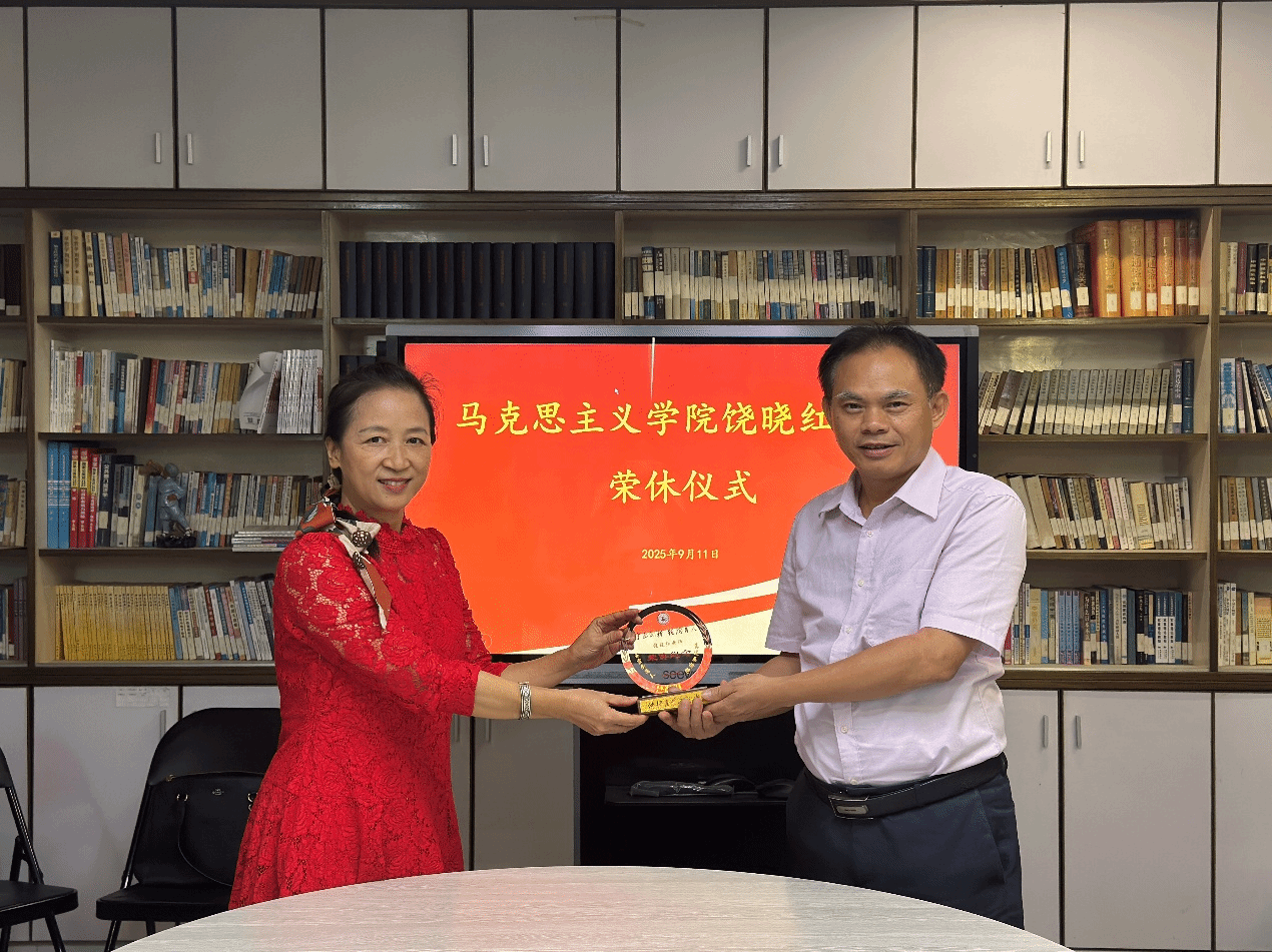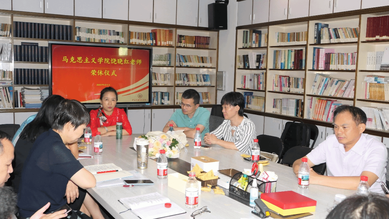 2025年9月11日下午,今年会官网在海珠校区行政楼西704会议室举行饶晓红老师荣休仪式。今年会官网领导班子及教师代表参加活动。
