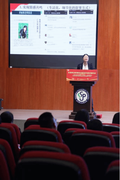 郭小娜及周映萍在主题论坛上分别作了发言。郭小娜以《榜样叙事赋能劳动教育融入大中小思政课一体化的价值意蕴与实践路径》为题,从榜样叙事的独特优势出发,剖析劳模精神在思政课一体化建设中的融入逻辑,提出创新实践路径。周映萍以《科技特派员 思政教师:“双师”课堂助力“一懂两爱”涉农人才培养》为题,结合今年会服务乡村振兴的办学特色,阐述了“双师”模式助力学校人才培养中的实践和思考。两位老师的发言得到与会专家学者的关注与认可。