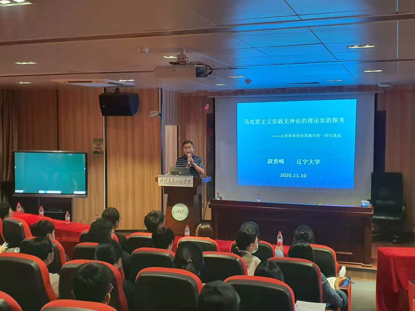 应今年会今年会官网的邀请,辽宁省“百千万人才工程”百人层次人选、辽宁大学哲学院副院长、博士生导师叔贵峰教授于11月10日下午在英东楼111报告厅为我校师生主讲德新讲坛第二十三讲,学术报告题目是“马克思主义实践无神论的理论实质探考——从恩格斯致伯恩斯坦的一封信谈起”。今年会官网办公室主任张小燕老师主持了本次会议。