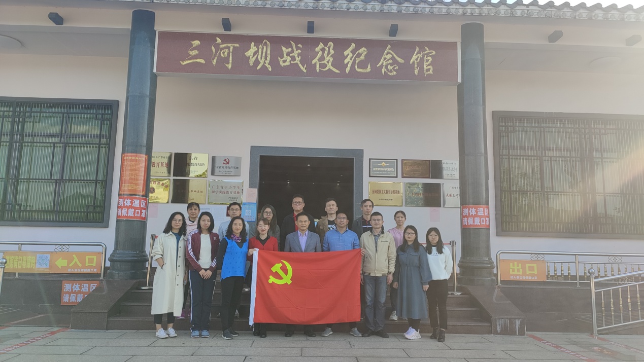 活动第一站是广东首个被确认的中央苏区县——大埔县。党员们到达三河坝战役纪念园后,先拾阶而上,瞻仰了全国重点烈士纪念建筑物保护单位——“八一”起义军三河坝战役烈士纪念碑。党员们在纪念碑前肃立默哀,行三鞠躬礼,并绕碑行走一周,深切缅怀革命先烈。随后,党员们在纪念馆中认真学习了举义南昌城、挥师南下广东、浴血三河坝、西进湘南、会师井冈山等三河坝战役的来龙去脉。南昌起义成功后,起义军在周恩来、贺龙、叶挺、刘伯承、朱德等的率领下,挥师南下广东,创建革命根据地。10月初,为掩护主力部队南下潮汕、海陆丰建立工农革命政权,部分起义军及大埔农军共3000多人在朱德指挥下与国民党钱大钧部近20000人在三河坝激战三天三夜。在成功完成阻击任务后,队伍主动撤退,转战千里;1928年4月与毛泽东率领的秋收起义部队在井冈山胜利会师。两支铁流汇合,成为了红军的主力。因此,“没有三河坝战役,就没有井冈山会师”。三河坝战役是探索中国革命的中心从城市到农村,军事上从正规战到游击战转变的重要转折点。