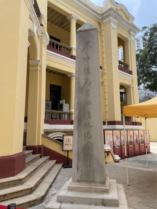 教工第二党支部全体党员共同瞻仰“廖仲恺先生牺牲处纪念碑”,纪念碑坐落在越秀南路89号中华全国总工会旧址院内北侧,由叶剑英元帅亲笔题写碑名。廖仲恺先生是伟大的爱国主义者、中国民主主义革命的先驱。1925年8月20日上午,廖仲恺与何香凝驱车前往广州国民党中央党部(广州惠州会馆旧址)出席会议,在惠州会馆门前石阶上惨遭埋伏的暴徒射击,身中四弹,不幸离世,终年48岁。同年10月,中华全国总工会迁入惠州会馆办公。