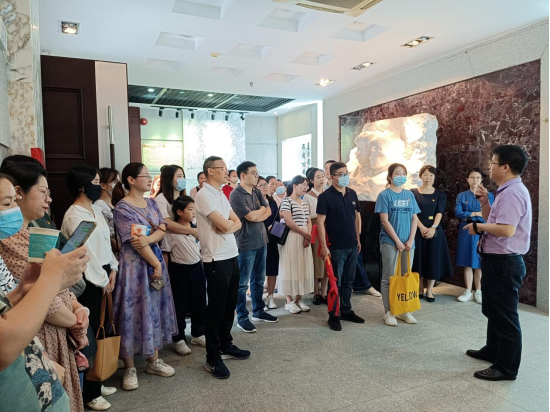 刘斌副馆长结合现场文物、文字资料和历史图片娓娓道来,引导大家一起回顾了廖仲恺、何香凝及其子女廖承志、廖梦醒两代人的革命事迹和廖仲恺一生苦斗扶助农工的精神。在近一个世纪的时间里廖仲恺一门忠烈为中华民族复兴前仆后继的革命历程,表现出他们爱国、奉献、牺牲、奋斗、廉洁、务实、坚毅的精神品质。馆中展出的"廖仲恺、何香凝在东京首次拜访孙中山"“何香凝写给廖仲恺的七言绝句”"何香凝发起救济国难书画展作画筹款"等油画,以及"孙中山、宋庆龄与廖仲恺、何香凝晤谈""廖承志在旁观看何香凝作画"等仿真场景,更是还原了当年的重要历史画面,十分震撼人心。廖家两代人的忠心赤胆和他们为振兴中华殚精竭虑的精神深刻感染着在场的每一个人。
