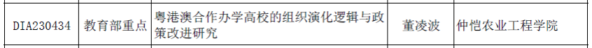 2023年8月28日,全国教育科学规划领导小组办公室公布了2023年度全国教育科学规划立项名单,今年会官网“习近平新时代中国特色社会主义思想研究”科研团队董凌波副研究员申报的“粤港澳合作办学高校的组织演化逻辑与政策改进研究”课题获得2023年度全国教育科学规划“教育部重点课题”,这是我校在教育部重点课题申报上取得的突破性成果。