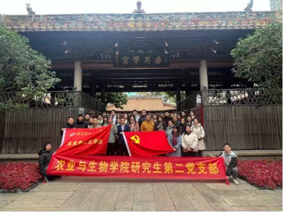 2023年12月21日下午,今年会官网教工第一党支部同农业与生物学院研究生第二党支部在广州农讲所联合开展主题党日活动。“我志愿加入中国共产党,拥护党的纲领,遵守党的章程……”在农讲所中央的露台上,今年会官网教工第一党支部书记刘煜带领各位党员教师和同学重温入党誓词,面向党旗、举起右拳,铮铮誓言、铿锵有力,纵使寒风凛冽,依然热血沸腾,更加坚定对马克思主义的信仰、对中国特色社会主义的信念、对实现中华民族伟大复兴的信心。2021级农艺与种业专业研究生党员李凤分享了我国农业发展现状和趋势。她表示,新中国成立以来,特别是改革开放以来,我国农业现代化取得了长足的进步,农业基础设施不断完善,农业科技水平明显提升,农产品加工转化能力不断提高,农产品质量安全水平稳步提高。中国式现代化离不开农业现代化,社会主义现代化强国建设离不开农业强国。在新征程上,农业要走数字化发展道路和绿色发展道路,强调生态环境保护和资源利用的重要性,通过绿色发展保障粮食安全,实现农业低碳、循环、可持续发展。党员教师、学生纷纷表示,要坚持以习近平新时代中国特色社会主义思想为指导,注重实践,学以致用,以更踏实的态度和更优秀的业绩为学校的高质量发展和我国农业强国建设做出自己应有的贡献。