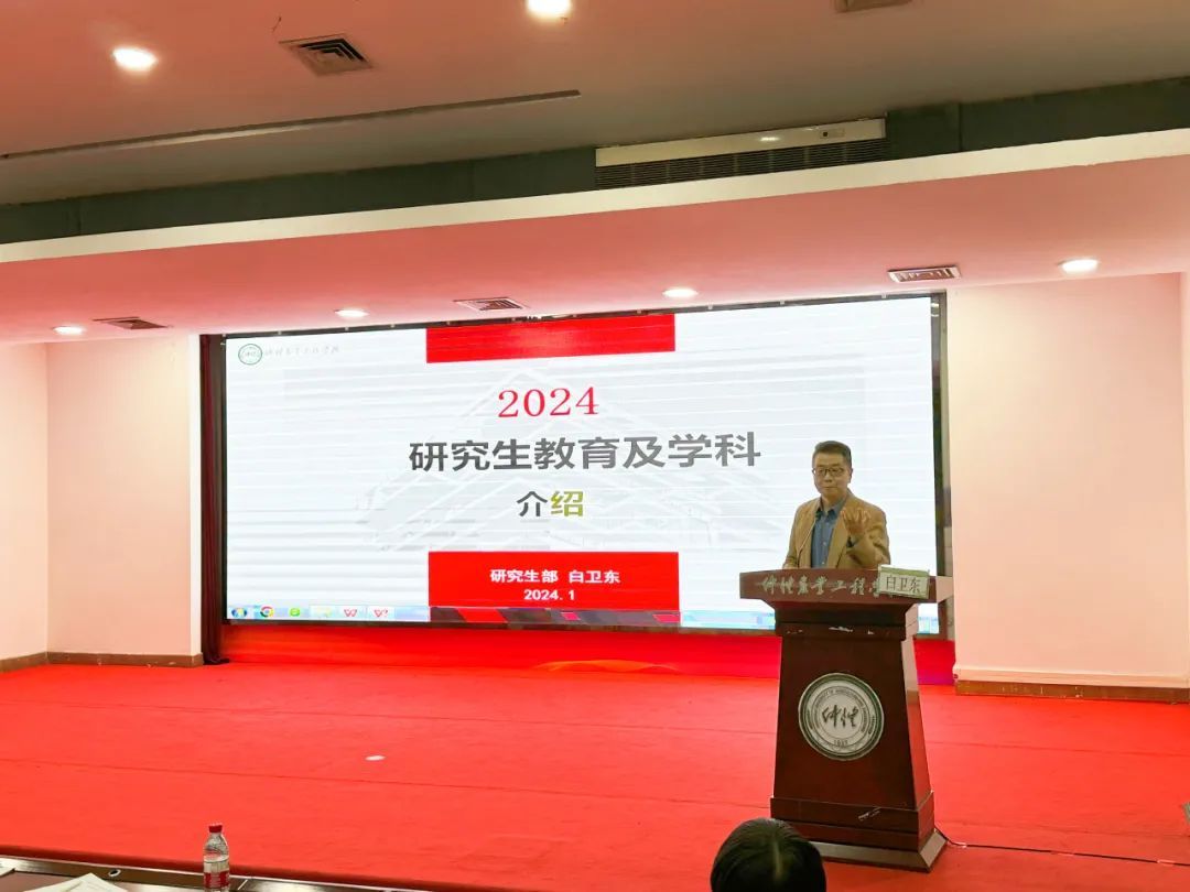 会议首先由白卫东部长介绍学校研究生培养和学科建设相关情况,他从机构设置与职能、研究生教育基本情况、近年招生情况、导师遴选、研究生培养与学位授予、学科建设等六个方面向与会教师进行了详细介绍。这对与会老师,尤其是近两年新入职的老师是一次很好的校史校情教育和学科建设培训。