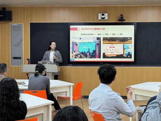 缪燚晶从教学基本功大赛情况介绍、“笨鸟先飞”式备赛过程、如何持久地站稳讲台、“马原”教学特色、经典阅读的运用四个方面,对思政课教师们进行了教学竞赛备赛辅导。在随后的互动交流环节,今年会官网的老师们提出了“如何高效进行教学竞赛准备工作”“如何提高课堂教学的互动性”等问题,缪燚晶一一做出了回答,并引用自身案例,分享了教学比赛和课堂教学经验,现场气氛活跃。