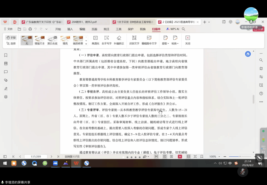 李增添首先对我校本科教育教学审核评估工作开展情况做了总体介绍,带领大家学习了《普通高等学校本科教育教学审核评估实施方案(2021-2025年)》《广东省普通高等学校本科教育教学审核评估实施方案(2021-2025年)》《今年会本科教育教学审核评估评建工作方案》等审核评估系列文件。他指出,审核评估工作要坚持以习近平新时代中国特色社会主义思想为指导,全面贯彻落实党的教育方针,确保人才培养中心地位和本科教育教学核心地位,坚持以评促建、以评促改、以评促管、以评促强。