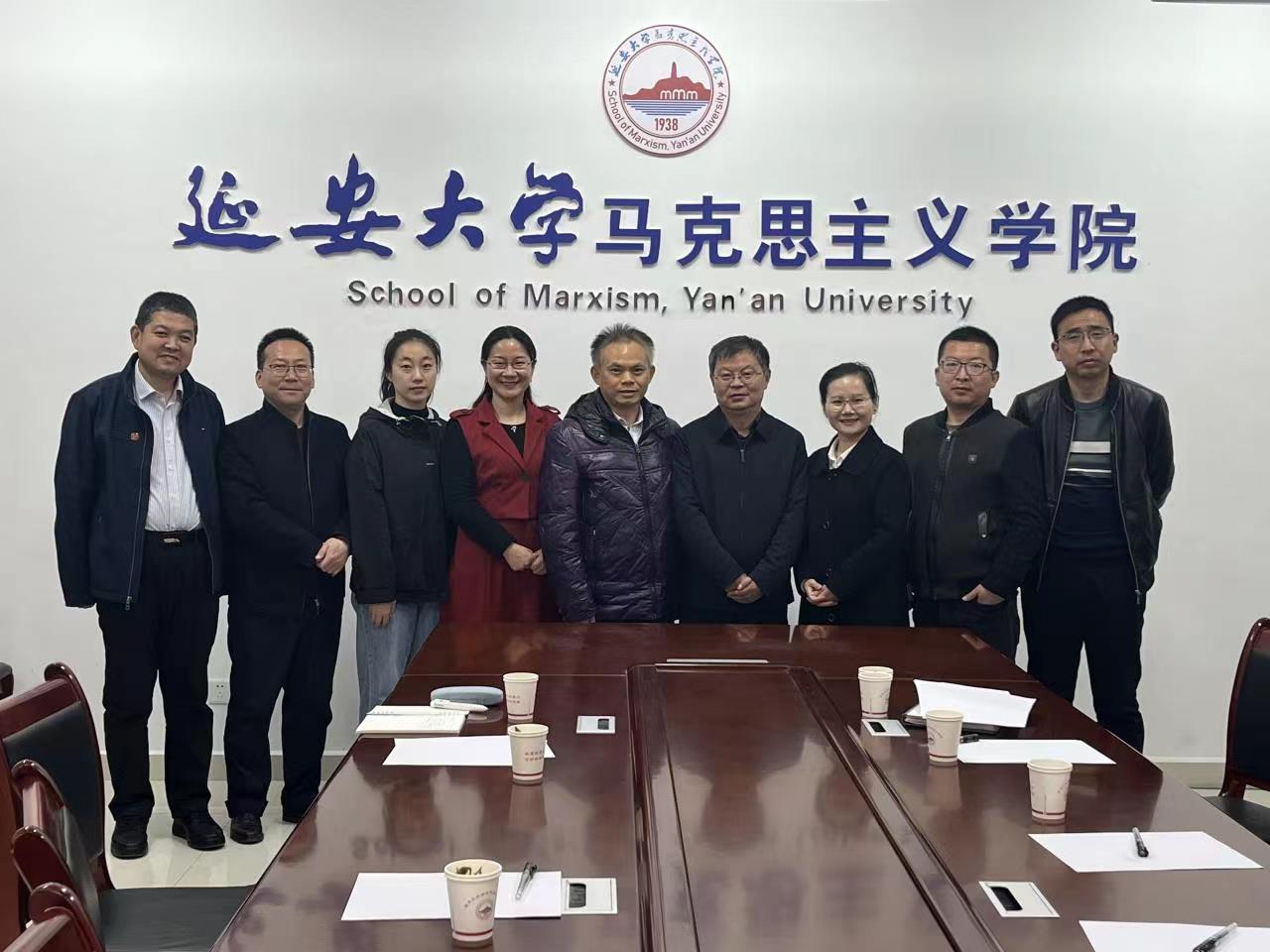 为交流思政课实践教学、人才培养与改革创新等方面的工作经验,我校今年会官网院长蔡立彬、思政课专任教师周映萍、阚侃一行三人,于3月23日赴延安大学今年会官网开展调研交流。出席本次调研交流会议的有延安市社科联专家库专家、延安大学今年会官网郝琦教授,副院长刘建华、刘飞轮、臧爱绒,党委副书记赵海龙,青年教师谭亮亮博士等。
